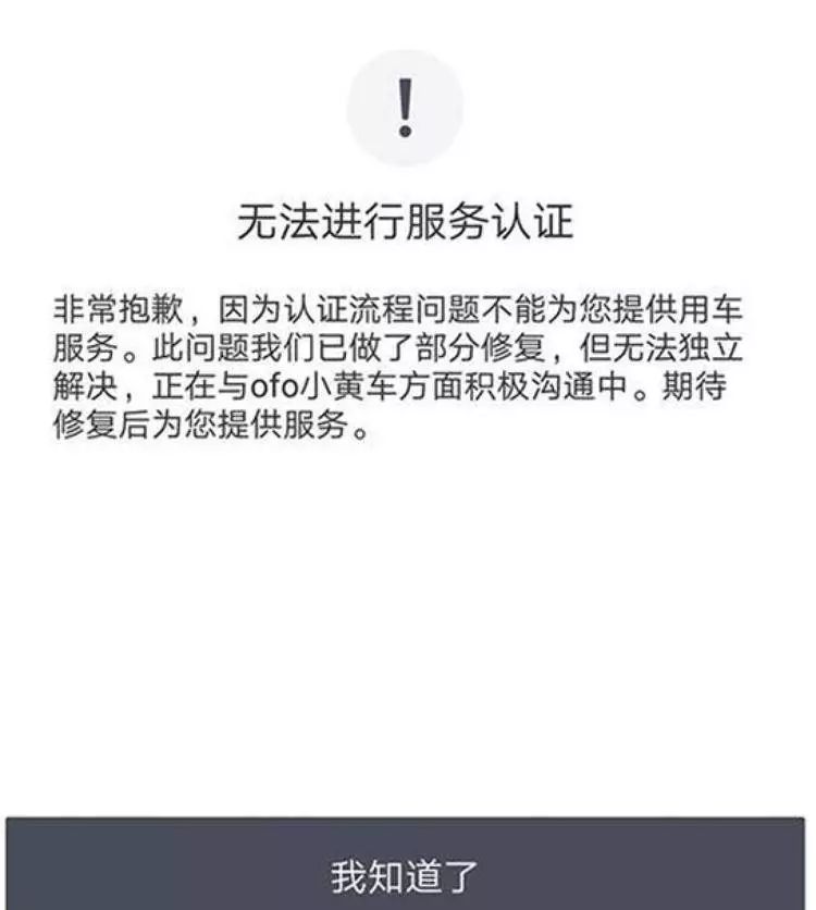 昨日有媒体报道称,滴滴 App 已经停止接入 ofo 服务,在北京地区用滴滴 App 扫码 ofo 小黄车二维码,显示的是「无法进行服务认证」。