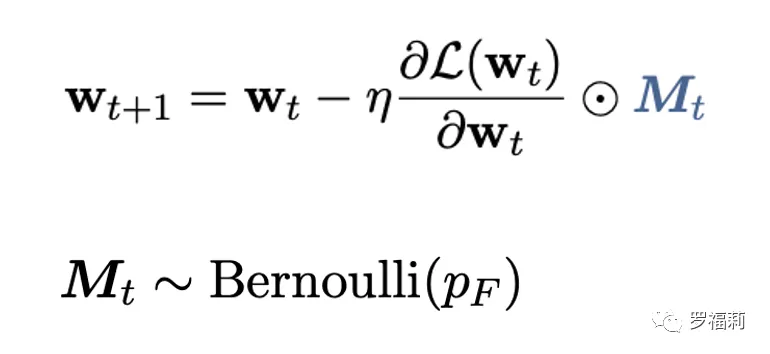 对于下游任务无关算法Child-Tuning_F(F for Task-Free) ,其最大的优点是简单有效,在Fine-tune的过程中,只需要在每一步更新的迭代中,从伯努利分布中采样得到一个Gradients Mask (M_t)即可,相当于在对网络参数更新的时候随机地将一部分梯度丢弃。