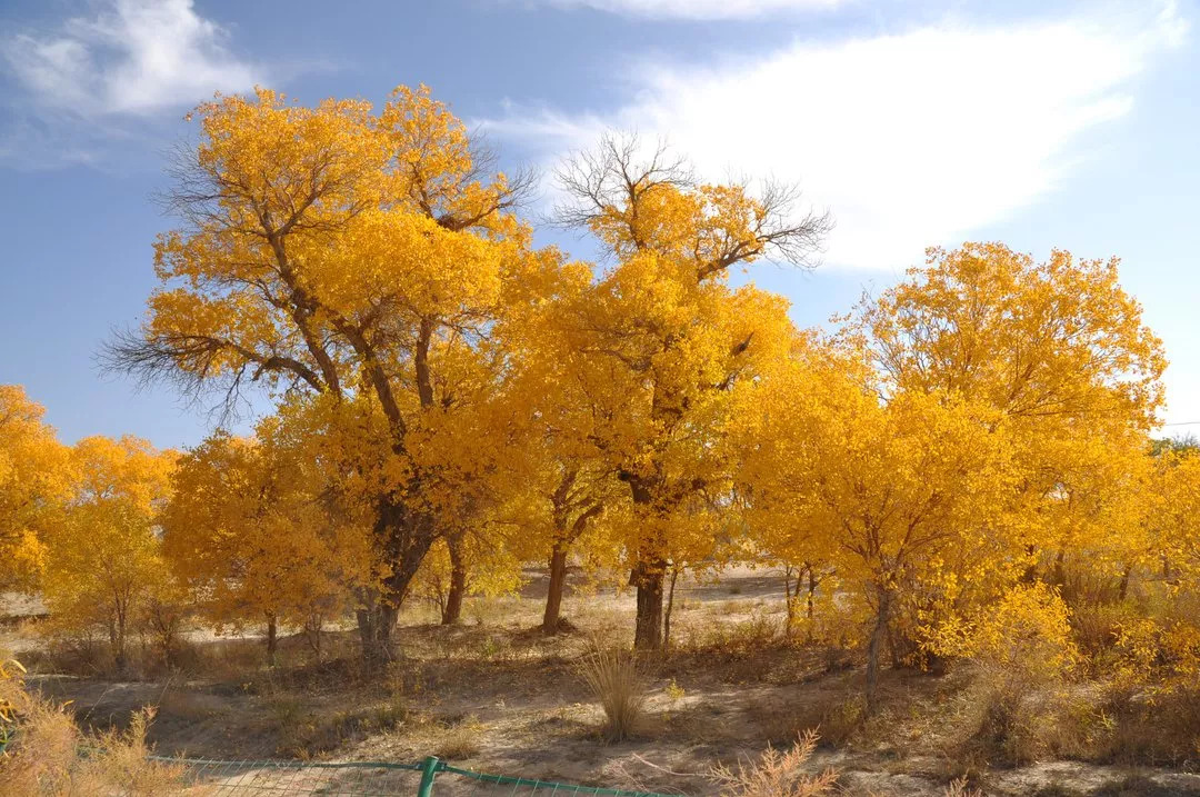 胡杨林是一种防沙的好树。在这样的荒漠地区,只要有一点点水,就能支撑胡杨林的生长。这种树不仅耐寒、耐热、 耐碱、耐涝、耐干旱,枝繁叶茂地还能抗御风沙。当然,还要配合种植榆树、沙枣、花棒等本地树种,让种植地区的生态系统能够活起来。人工培育几年稳固住局面,随着其他植物和动物的到来,这里就能永久地将沙漠化挡在门外。