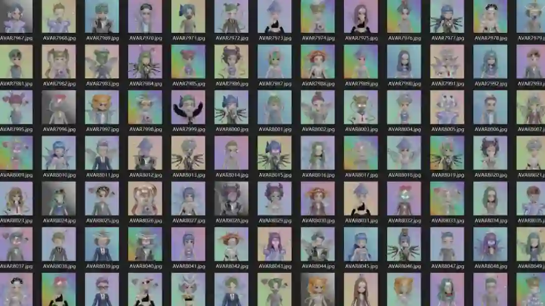 稳定的规模化生产是如何做到的?AVAR技术部介绍说,首先,自研的“人物融合”算法支持直接提取IP的关键信息,应用到三维框架中自动建立虚拟形象,一周内可以交付;其次,在三维编程的框架下,每个3D建模的指令都可以写成一行代码,然后进行批量生产。“我们将每个潮玩拆分成很多零件,头饰、面饰、服装、装置等零件经过参数化建模,都可以套用、再组合,然后程序化生成新的作品。”