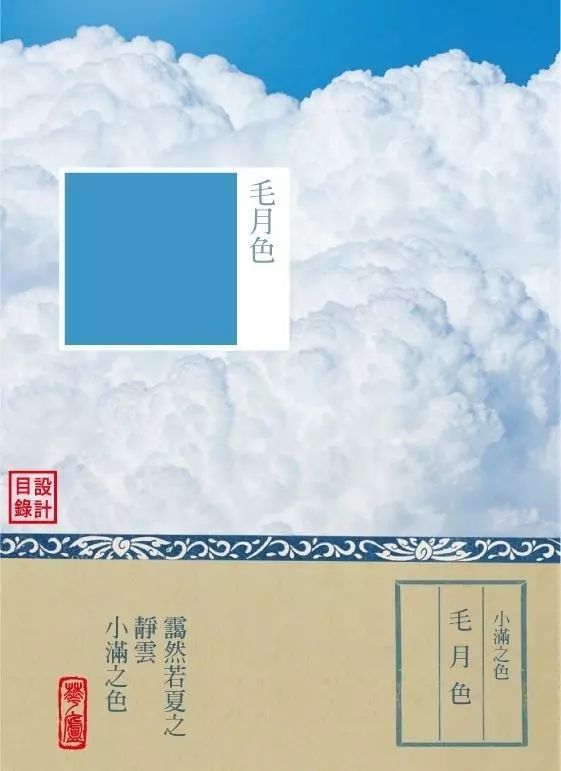 而且,毛月色还是二十四节气之一的小满的颜色。“四月中,小满者,物致于此小得盈满”,“立夏天空澄净绿荫浮云,故为毛月色描之”。