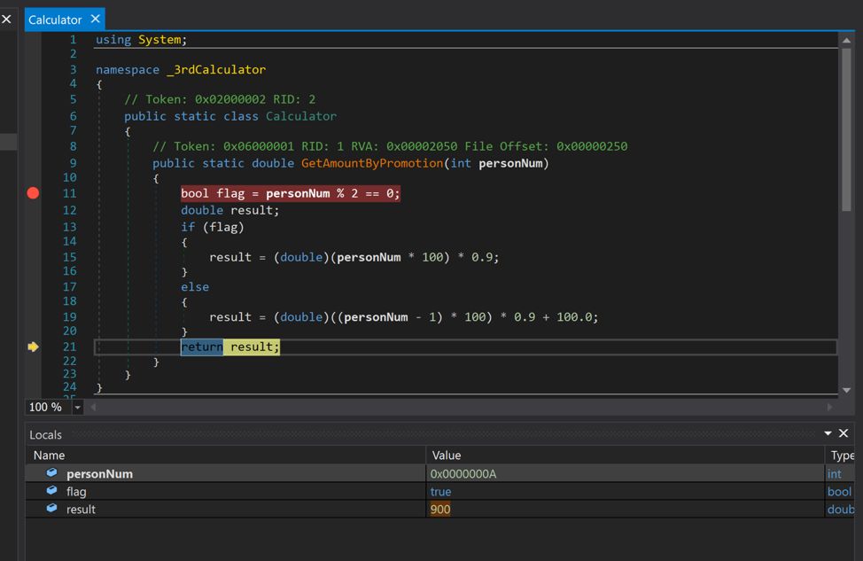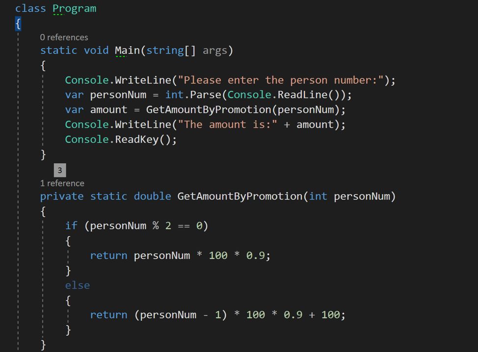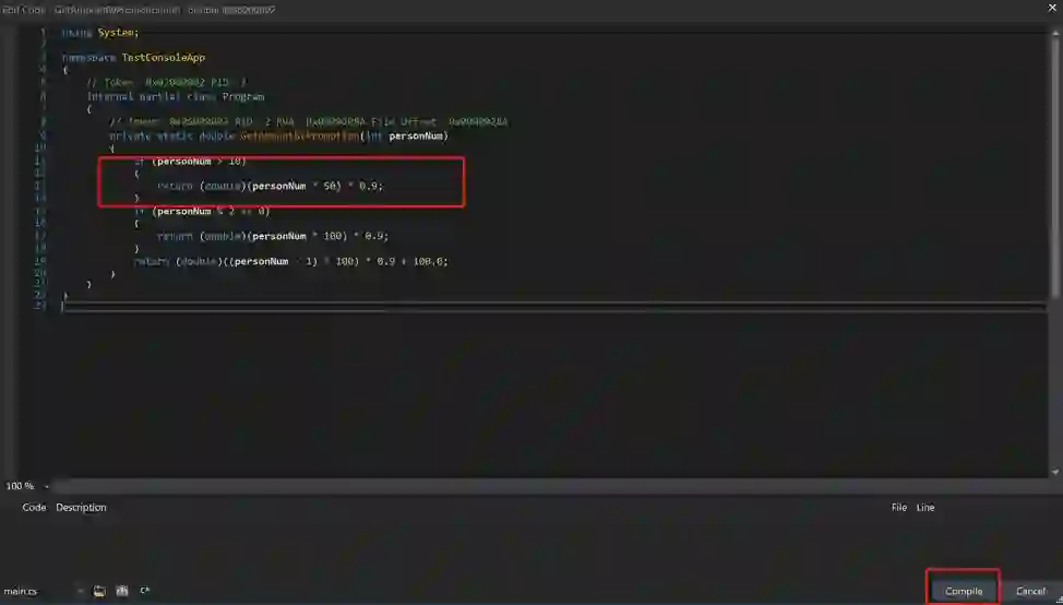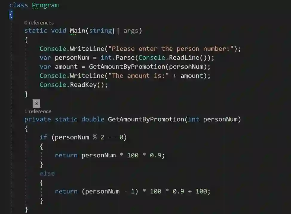 例如上面的例子,我想把计算逻辑增加超过10个人的时候,优惠更高,那么我可以直接修改dll里面的方法。