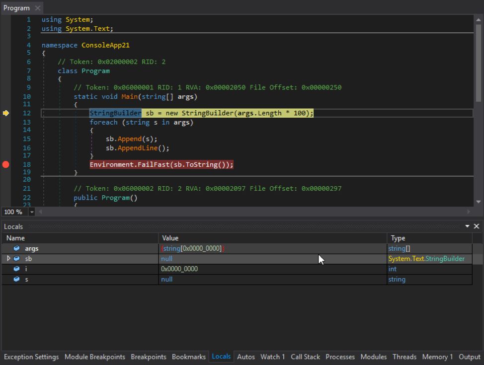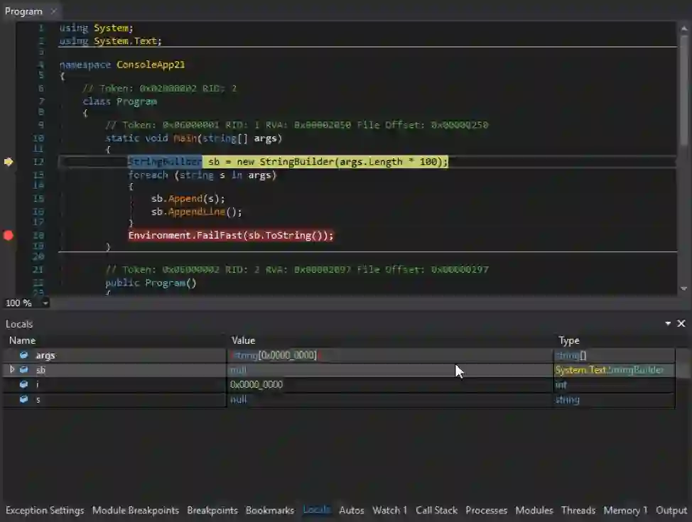 这个时候可以看到结果显示在下面Locals的窗口里面。