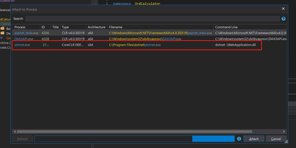 需要注意的是,如果是不需要publish的,而是直接把整个代码放在IIS下,然后每次编译就是一次发布的情况,不要直接使用代码下面的bin目录里的dll文件,因为IIS会把build出来的dll文件,动态生成一份出来,存到类似于\Windows\Microsoft.NET\Framework64\v4.0.30319\Temporary ASP.NET Files\root\c8367e31\abdb5fb1\assembly\dl3下面的目录里,这个时候要先搜索到你想debug的方法在哪个dll文件里,然后搜索到这个文件位置,再用dnSpy打开它,dnSpy会自动加载和这个dll有关联的所有dll文件,然后启动网站,这个再附加到w3p.exe上就可以了。