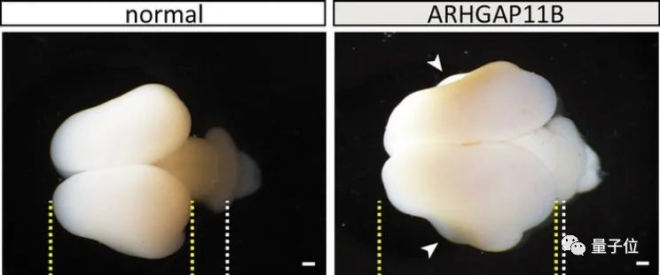 总结来说,就是在导入ARHGAP11B基因后,灵长类动物大脑: