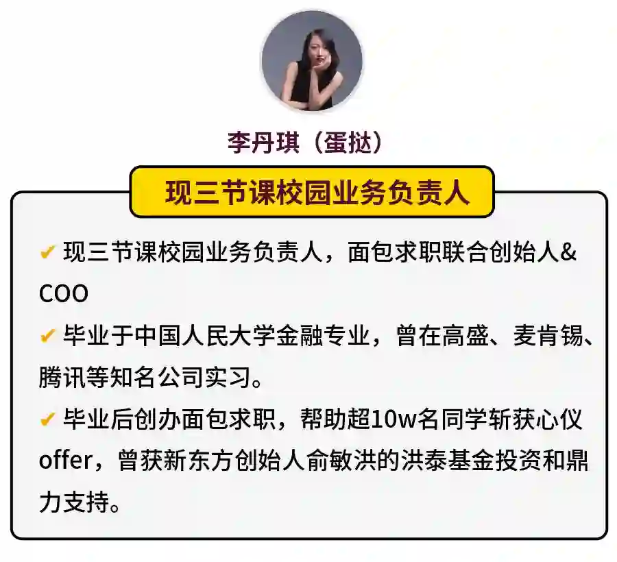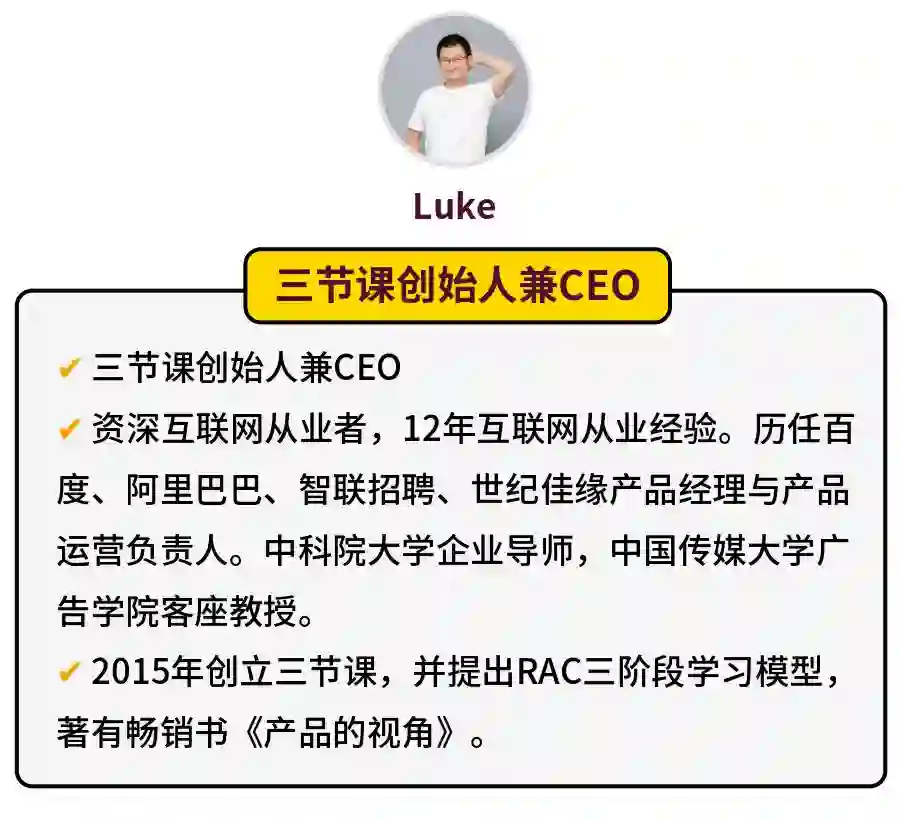通过「第一轮筛选」进入面试阶段的同学,我们送你三节课平台唯一一门由三位创始人——Luke、布棉、黄有璨联合担任导师的《互联网入门基础课》。