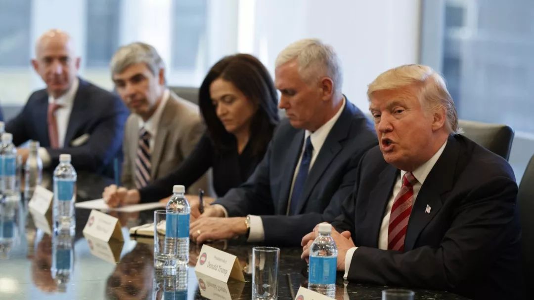 2017年6月中旬,特朗普总统再次召集互联网大佬开会。这一次,贝索斯离特朗普很“近”,中间只隔着微软CEO纳德拉
