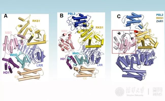 植物抗病蛋白表达在正常植物细胞内受到严格的调控,且其活化会导致感病局部细胞组织的超敏性死亡(HR),使得植物体内抗病蛋白介导的信号通路研究非常困难。植物抗病领域急切需要抗病蛋白的全长抑制及活化状态的结构来整合以往海量的遗传信息并指导植物抗病机制的深入研究。因此,抗病蛋白理论研究的一个巨大瓶颈在于缺乏蛋白质结构,这正是柴继杰团队2004年成立以来的主攻方向。