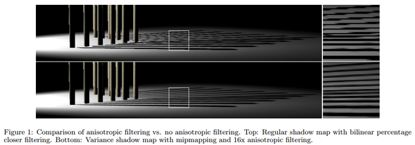 [18] Donnelly, William, and Andrew Lauritzen. "Variance shadow maps."Proceedings of the 2006 symposium on Interactive 3D graphics and games. ACM, 2006. http://www.punkuser.net/vsm/vsm_pa