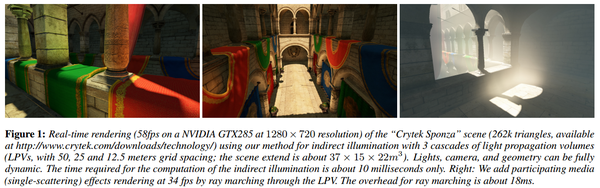 [10] Kaplanyan, Anton, and Carsten Dachsbacher. "Cascaded light propagation volumes for real-time indirect illumination." Proceedings of the 2010 ACM SIGGRAPH symposium on Interactive 3D Graphics and Games. ACM, 2010. http://www.vis.uni-stuttgart.de/~dachsbcn/download/lpv.pdf