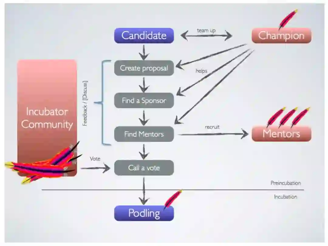 如果你已经在维护一个开源项目,想让它进入 Apache 基金会,那你则需要充分了解项目在社区不断演进的过程,“提名→进入孵化器→成为顶级项目”,每一步都有迹可循。
