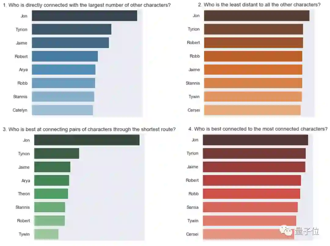 可以看到网络理论认为龙妈处在边缘位置,重要性不仅不如囧雪和小恶魔,甚至连二丫也没比过。