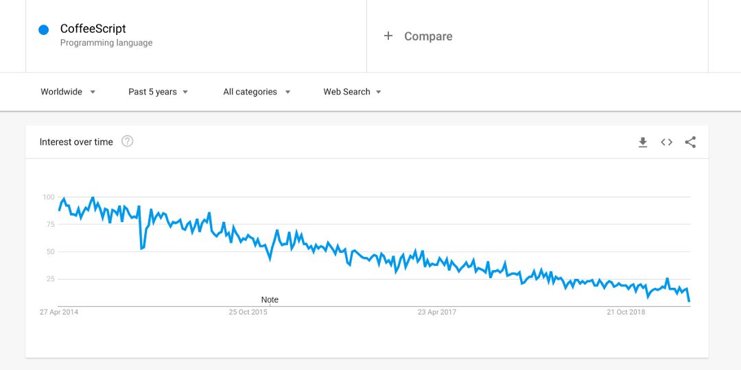 大约在8年前,现代JavaScript中的一些东西出现在了CoffeeScript中!但尽管如此,如今CoffeeScript几乎已经死了,原因显而易见。曾经有一段时间,这种语言在软件开发公司中很受欢迎,然而现在却时过境迁了!