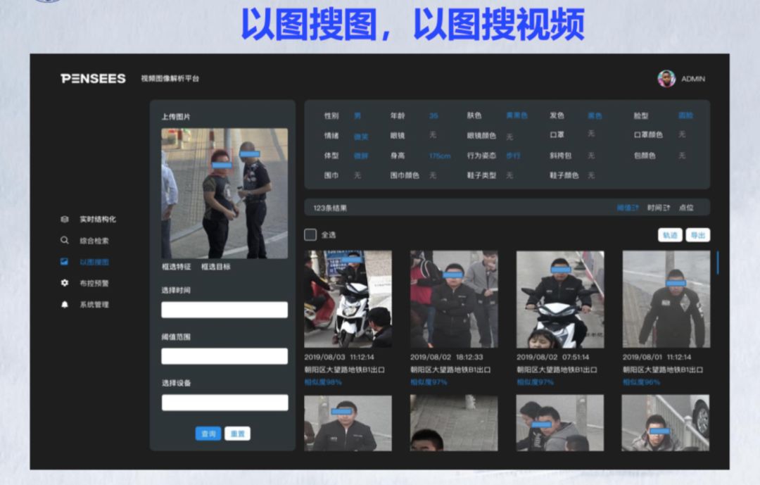 澎思也可以做到实时结构化预览、综合检索,以及以图搜图,甚至以图搜视频。