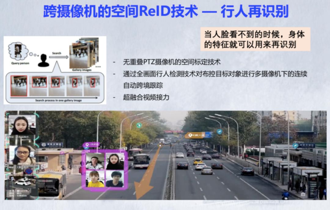 在不同的摄像头里,有时候有人脸出现、有时候没有人脸出现,通过ReID的技术,即使在看不到人脸的情况下,我们仍可以通过行人的身体特征去判断这个人是谁。