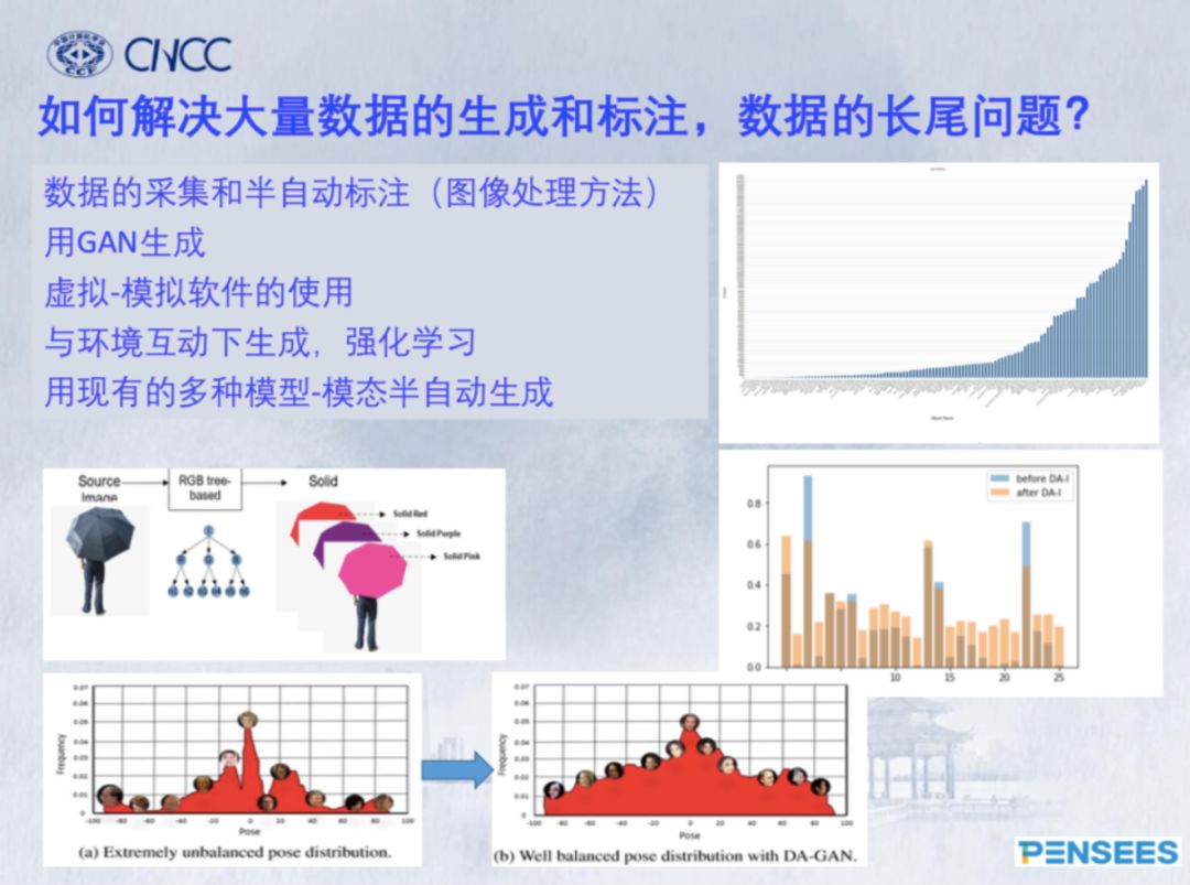 长尾问题我们用了各种方法来解决,甚至用一些传统的图像处理方法,比如雨伞我们可以生成不同颜色的,其中也用了一些很inpainting的技术,也用了GAN来生产,比如最下面这个人脸的数据库不平衡,这个文章已经发表。