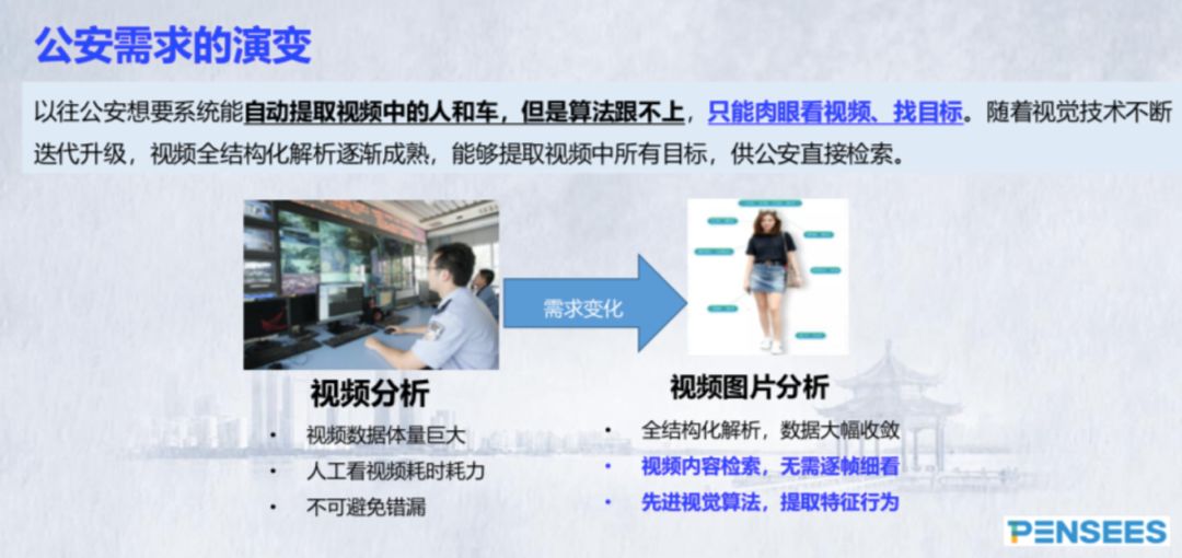 》的演讲,她认为当前由于巨量摄像头的存在并不断生产出海量的监控视频,如果想要更好地利用、存储和检索视频图像,必须把视频图像智能化,将视频结构化和智能压缩,只有这样才能做到事前预警、事中处置、事后分析。