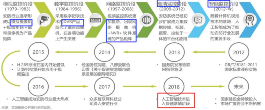 纵观整个安防行业的发展历程,AI的发挥空间还有很多。我相信大家也熟悉整个安防行业的发展,在座年轻人可能不太清楚,最早监控用的都是模拟摄像头,在中国模拟摄像头可能都不见了,但在其它国家还在大量地被使用。下一个阶段,当数字相机出现以后,就出现了DVR;接着网络监控阶段出现了,那时候我们就叫NVR+网络软件数字相机;今天我们看到的高清摄像头、以及智能监控已经出现在各个应用场景中了。