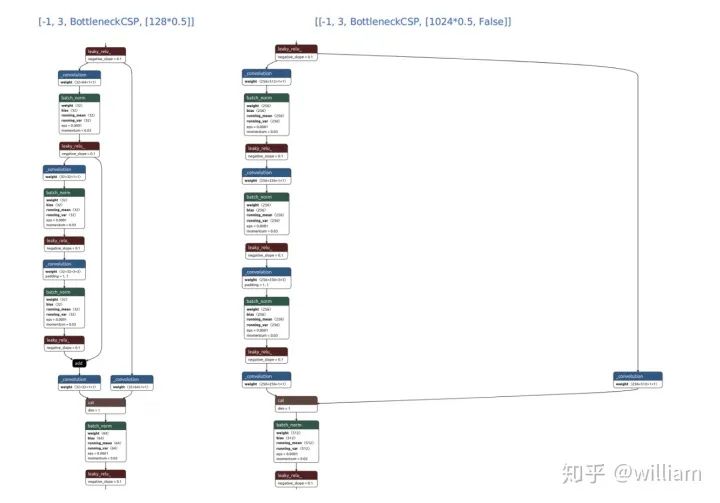 下图是YOLO V5s 中BottlenneckCSP有无False选项的结构对比: