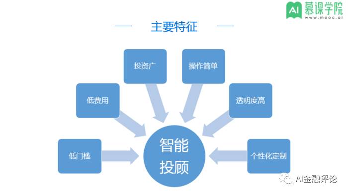 传统投顾一对一的投资理财询问服务有成本高,服务对象少、知识储备不足,经验较少、存在道德风险等缺点。智能投顾将人工智能和大数据等技术引入投资顾问领域,可以处理海量的信息,快速应对时势。具有低门槛、低费用、投资广、易操作、透明度高和个性化定制六大优势和特点。