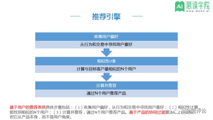 推荐引擎,即借助个性化推荐技术,基于用户的基本信息,从用户的行为和偏好中发现规律,进而判断用户是否对此项产品感兴趣,为不同用户提供个性化的内容,以此提升产品的内容吸引力。其实质是利用信息过滤技术向用户推荐其可能感兴趣的产品。根据实际各类推荐算法应用情况看,协同过滤推荐算法(即CF算法)比较适合金融机构采用,可尝试应用在智能投顾产品当中。