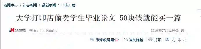 曾在四川新闻网记者采访报道中,成都理工大学的打印店员工陈女士坦然解释:业内确实有一些老板为了利益向学生出售毕业论文,几乎是公开的秘密,只不过大家都心照不宣而已。文印店的老板在接受订货后,遇到有到店里打印相关学科论文的学生,就趁其不注意,偷偷将论文保存下来,再通知买家。这样得来的论文几乎没有成本,无论卖什么价格,文印店老板都是稳赚不赔。