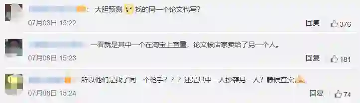 不过,对此两篇硕士论文大篇幅雷同的情况,网友也就此原因议论纷纷: