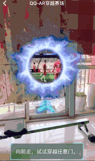 从任意门外部就可以看到内部的球场,你还可以手持手机通过真实走动穿越任意门,不只是走过去,还能实现来回穿梭。你将以第一人称参与到QQ虚拟足球赛场,并可以360度感受虚拟足球赛场的现场氛围。