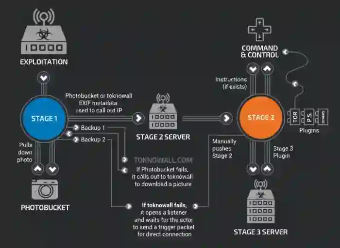 思科研究人员发出警告,政府支持的黑客利用名叫 VPNFilter 的恶意程序感染了 50 万路由器。美国执法机构 FBI 已经扣押了一台用于发动此次攻击的关键服务器,称攻击者是俄罗斯政府黑客。VPNFilter 能收集通信,对其他目标发动攻击,发送单条指令永久性毁灭设备。VPNFilter 能在设备重启之后仍然感染设备,被感染的路由器分布在至少 54 个国家,受影响的路由器产品由 Linksys、MikroTik、Netgear 和 TP-Link 制造,此外还有 QNAP 制造的网络存储设备。发动此次攻击的黑客组织被称为 Sofacy,aka Fancy Bear、Sednit 和 Pawn Storm。该黑客组织过去几年发动了一系列瞩目的攻击,其中包括 2016 年对美国民主党全国委员会的攻击。