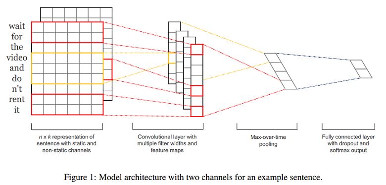这可能是因为上下文的具体位置对于预测Label可能并不是很重要,而句子某个具体的n-gram(1-max pooling后filter提取出来的的特征)可能更可以刻画整个句子的某些含义,对于预测label更有意义;