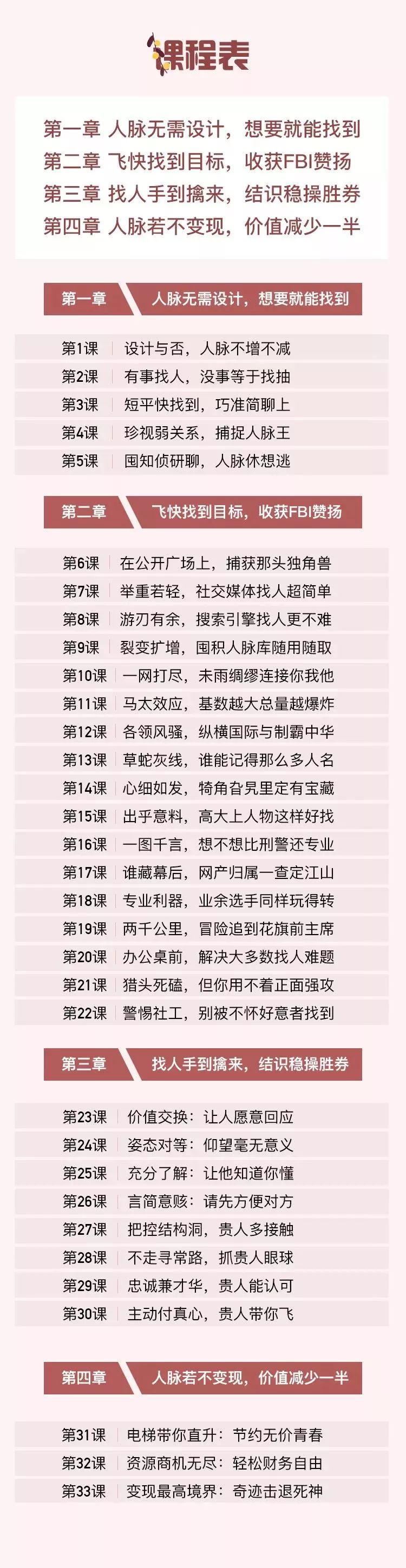 诸葛思远将会教你2000人亲测有效的独家找人秘籍,为你的人脉进阶之路打一个漂亮的前站。