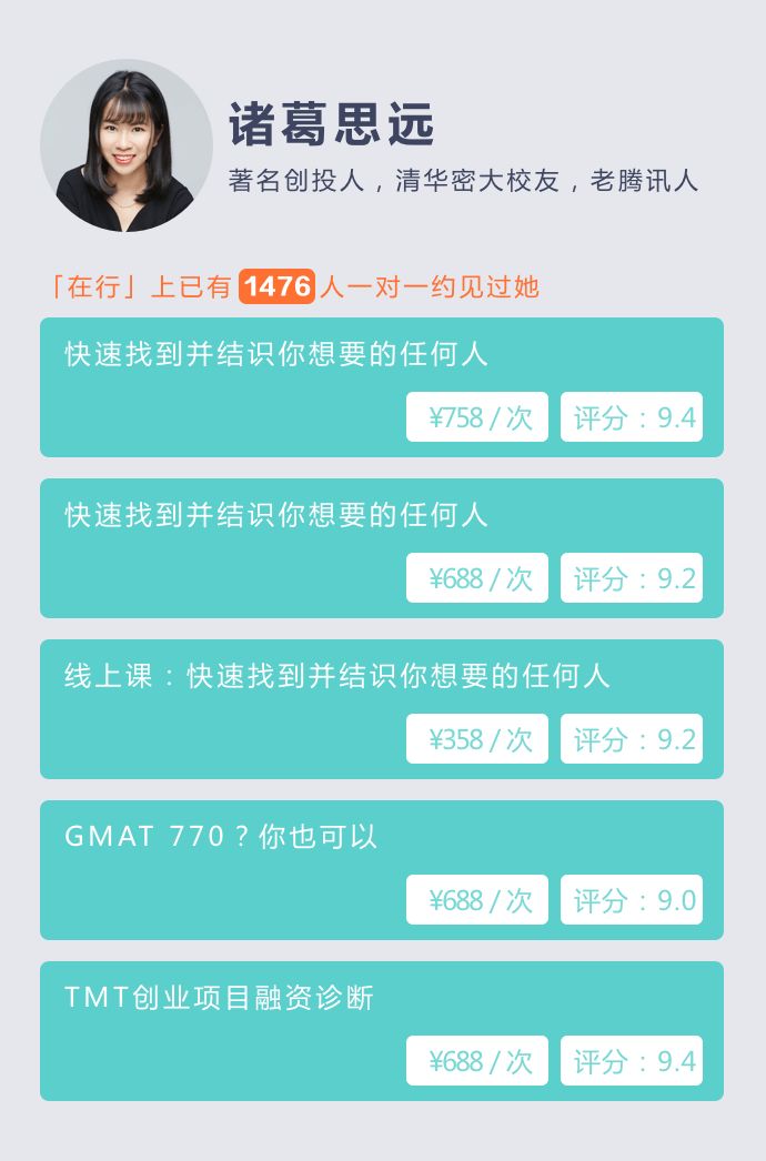 在「在行」平台,诸葛思远是被约见最多的专家,没有之一。