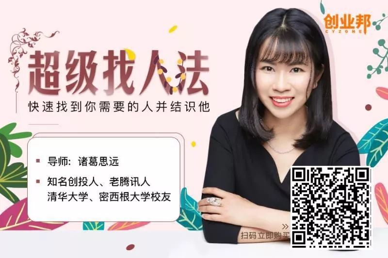 所以这次,诸葛思远带着她的「超级找人法,快速找到你需要的任何人并结识他」来到了创业邦,与你分享千人亲测有效,方法切实可行的快速找到目标对象课程。