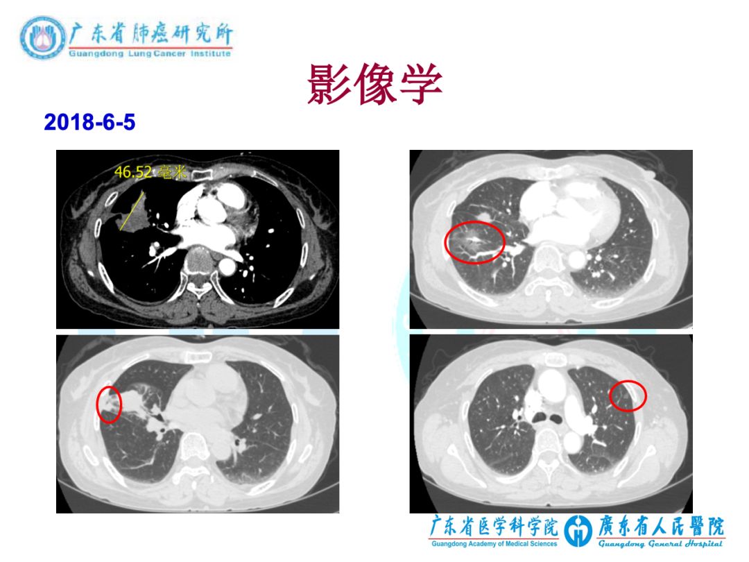 4)术后继续厄洛替尼(特罗凯)。术后2个月疾病全面进展。