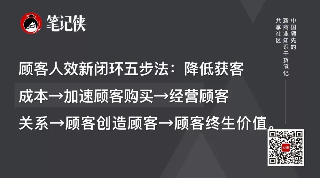 顾客人效提升的关键在于“重构消费关系”,可分五步:降低获客成本→加速顾客购买→经营顾客关系→顾客创造顾客→顾客终生价值。
