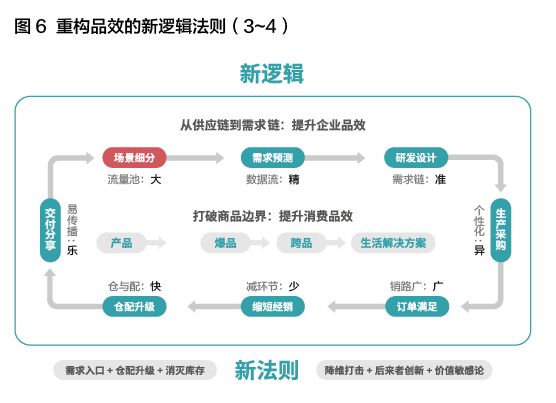 在“货”这一要素的重构中,对内求企业品效,对外求消费品效;
