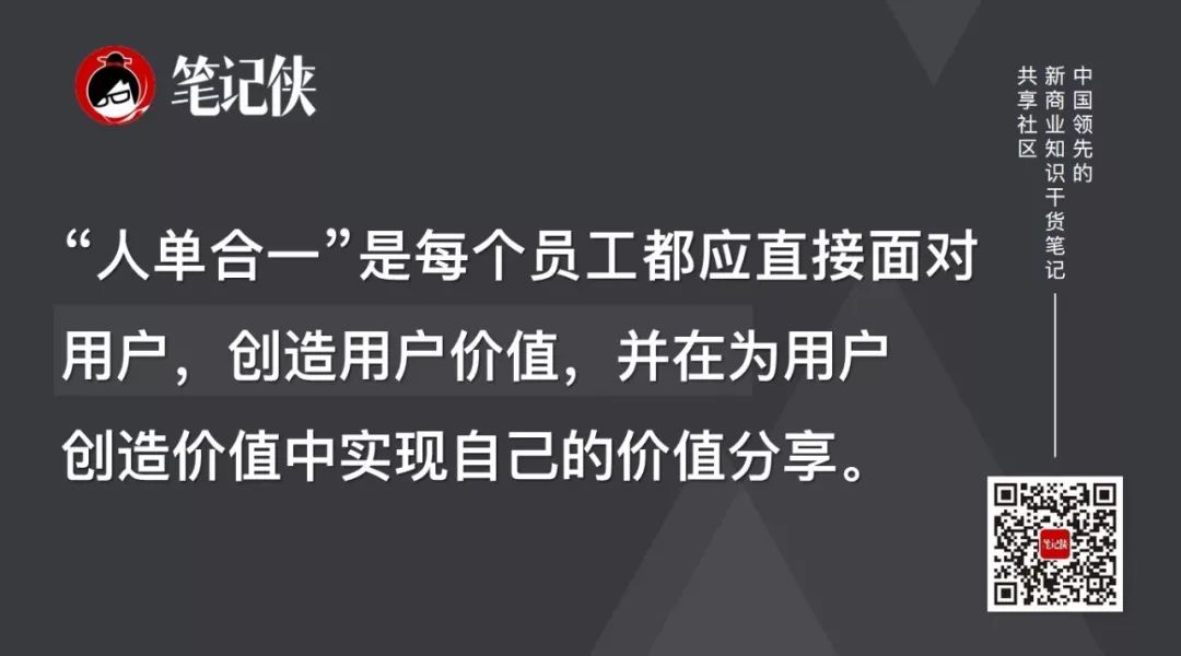 “人单合一”是每个员工都应直接面对用户,创造用户价值,并在为用户创造价值中实现自己的价值分享。