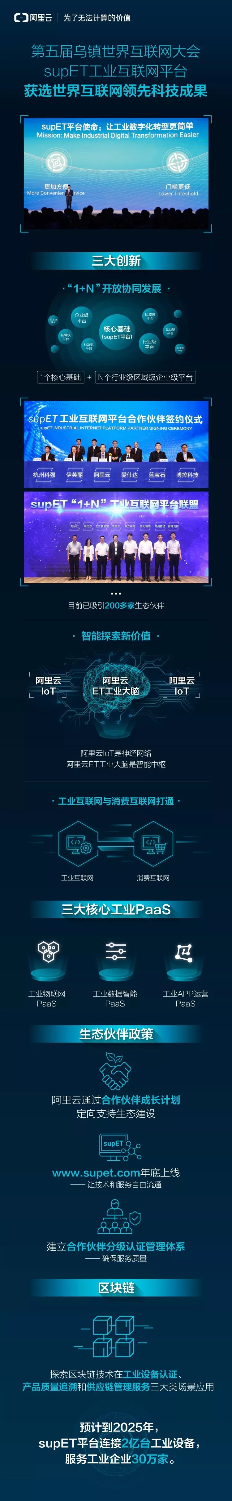基于科技普惠的使命感,阿里云牵头建设了supET平台,打造包容、共赢、开放、协作的工业互联网生态,为制造业企业提供一站式的数字化、网络化、智能化服务。