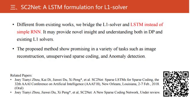 第二部分,介绍我们的第一个工作。现在大多可微编程是把优化过程展开,转换成回复式神经网络。而我们这项工作也是把优化过程展开,发现能够得到新的长短期记忆,再从可微编程角度,找到与长短期记忆网络的连接。