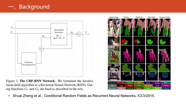 另外,在2015的ICCV上《Conditional Random Fields as Recurrent Neural Networks》文章中提出,把条件随机场的求解变形成了循环神经网络的相关运算,在图像语义分割上实现了突破。
