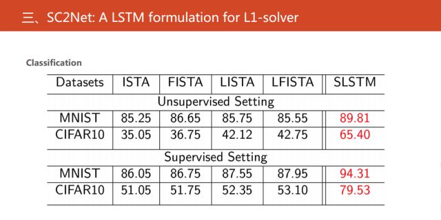 而这两个不足,正好是可微编程能够克服的问题。因此基于这些问题,我们对自适应的ISTA变形和展开提出新的神经网络——SC2Net。
