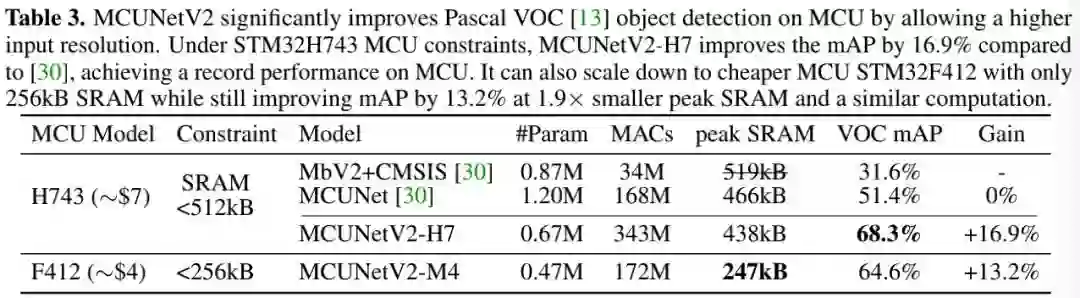 在H7 MCU上,相比MCUNet,MCUNetV2-H7的性能提升达16.7%mAP;