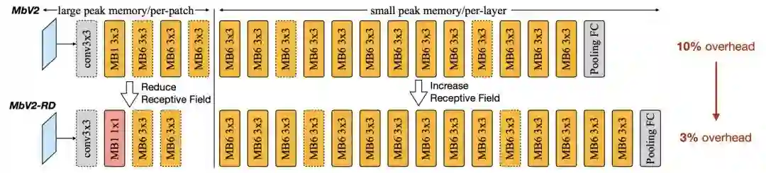 对于MobileNetV2,通过重分布感受野可以将额外的计算量从10%降到3%;