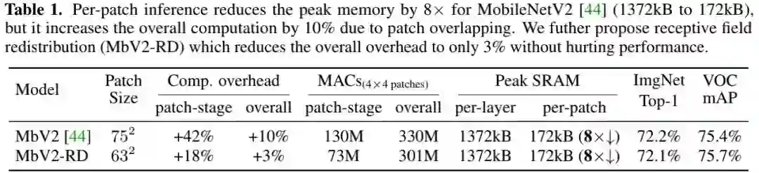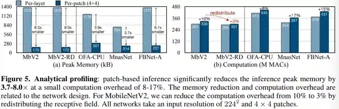 patch推理可以大幅降低峰值内存达3.7-8.0x,仅增加8-17%计算量;