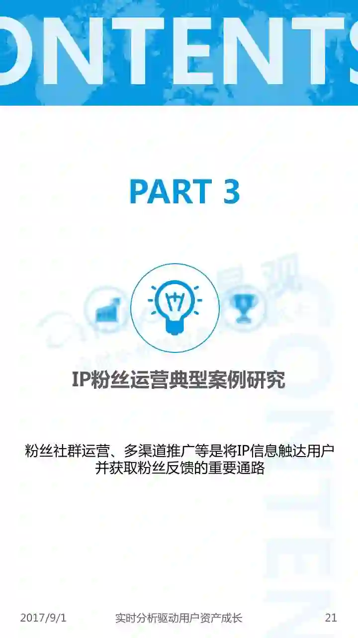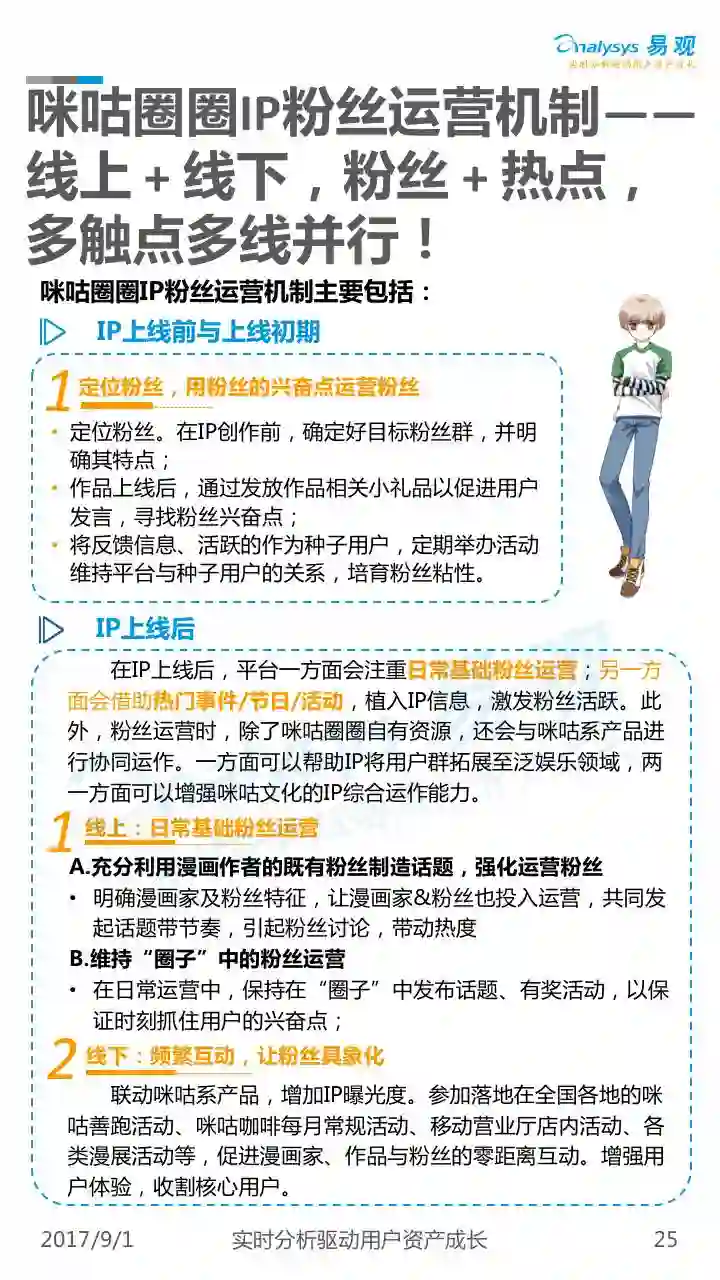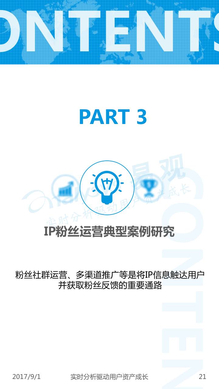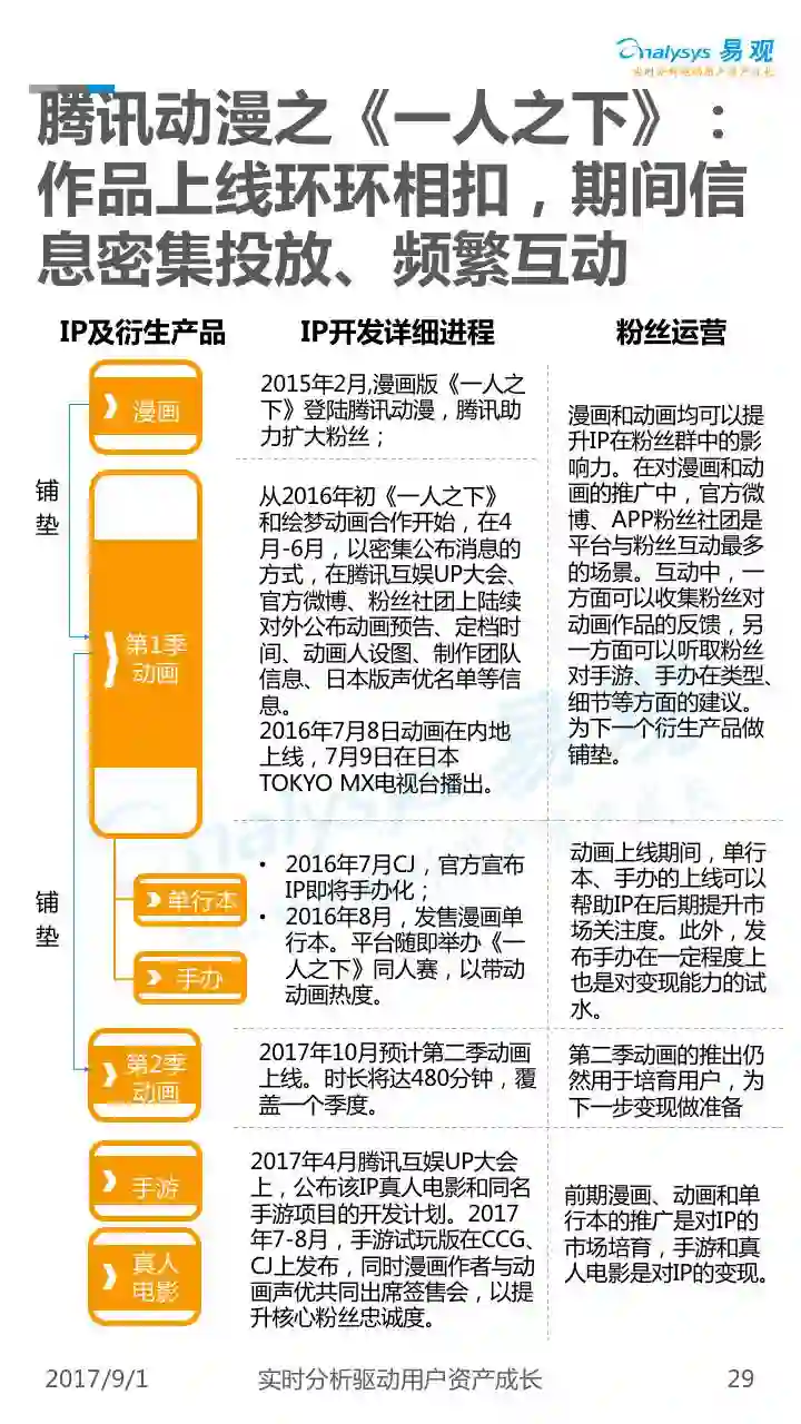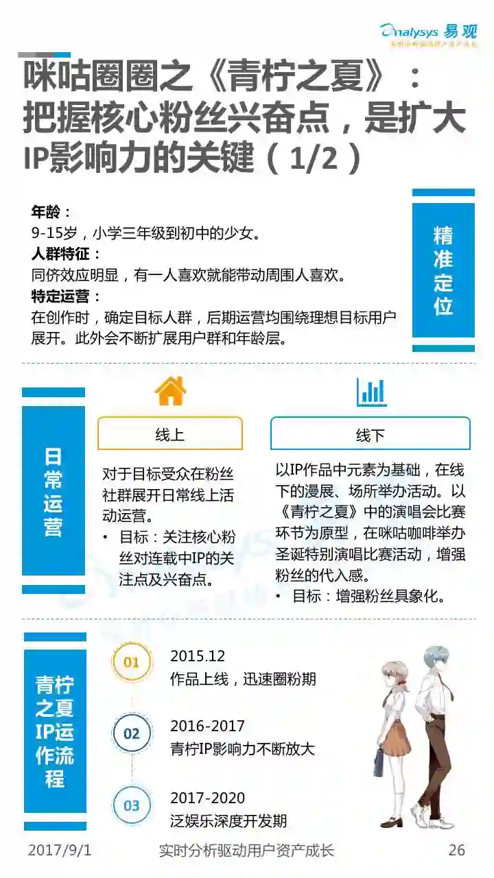 《移动动漫市场IP粉丝运营专题分析2017》从IP孵化及改编市场入手,分析了行业现状及市场已有的IP粉丝运营模式,并挑选了多个成功的IP粉丝运营案例做以辅助分析。未来动漫市场会更加重视对粉丝的运营,这对放大IP影响力、加速IP变现都大有裨益。