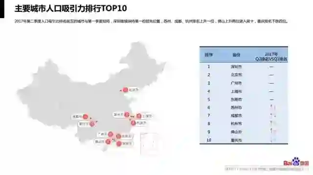 百度地图发布的《2017年第二季度中国城市研究报告》出炉,有关人口流动与城市活力排名的问题得到科学答案,中国第二季度哪个城市最“吸人”,四大城市群和五大人口大省有什么隐藏关联,均得以揭示。