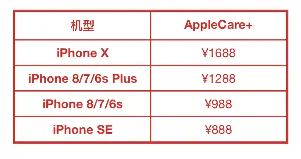 下表列示了目前 Apple 官网在售 iPhone 及其适用的 AC+ 价格。
