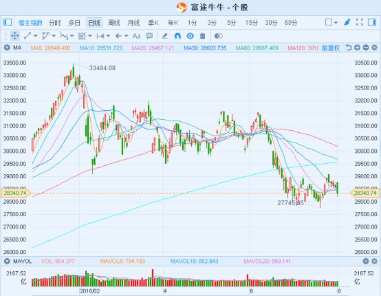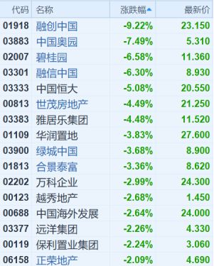 受到昨日政治局会议上明确要求遏制房价上涨,表明政府对于楼市坚决不放松的原则,以及深圳率先出台升级楼市调控政策等影响,内房股明显承压下跌,板块估值已经跌至历史低位。今日碧桂园大跌6.58%,PE为7.7 倍;融创中国跌9.22%,PE为6.985倍;中国恒大跌5.08%,PE为9.336倍。除了地产股,银行股及教育股等权重皆下跌,万州国际、石药、联通等少数飘红。