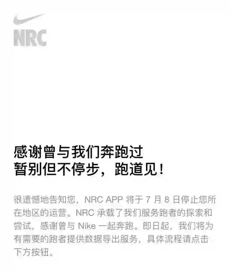 【耐克跑步APP宣布将停止中国大陆地区服务】