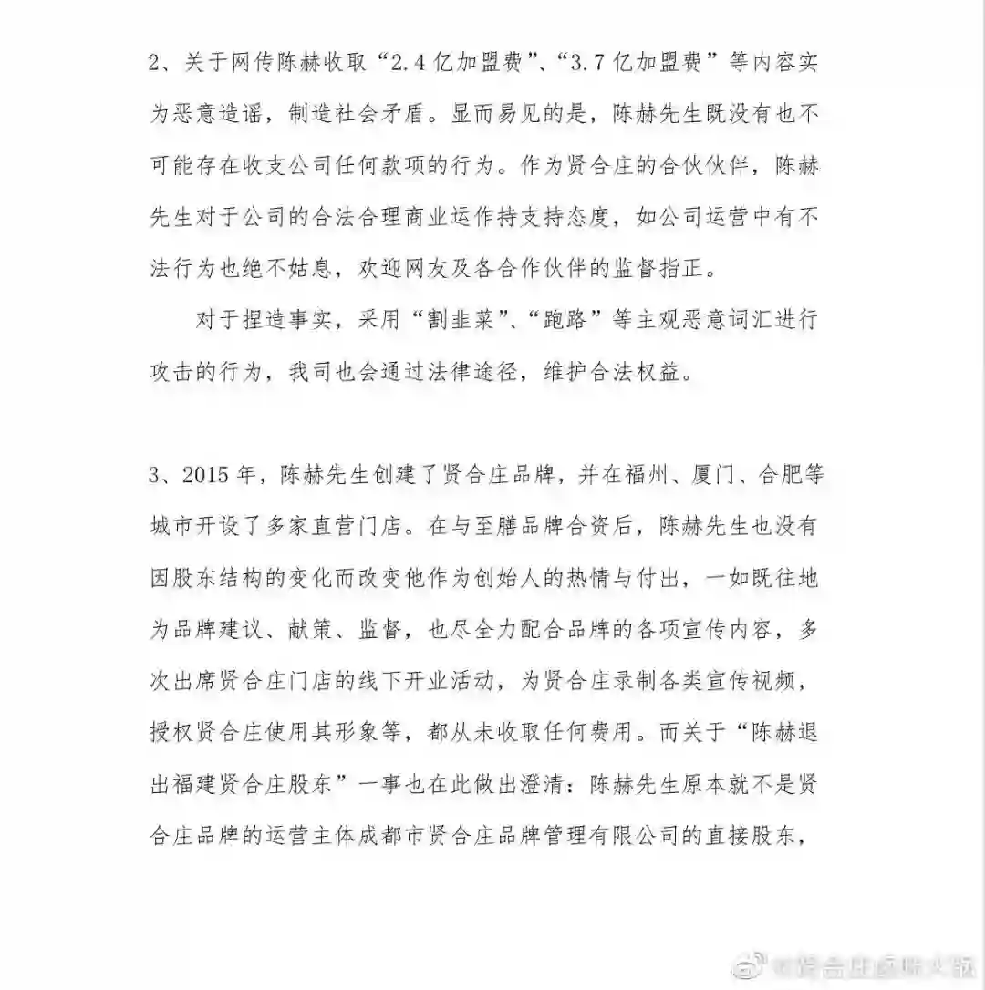 【贤合庄回应陈赫退出股东行列,辟谣其收巨额加盟费】